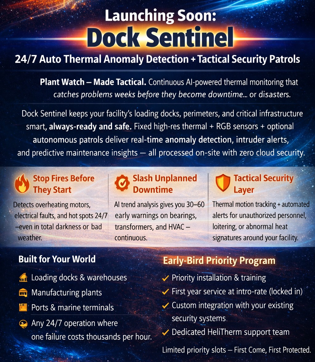 Helitherm Dynamics Inc is an innovator in enterprise solutions, specializing in thermal anomaly detection, predictive technologies, and intelligent systems to optimize equipment performance, reliability, and efficiency. We combine Machine vision with emerging AI-driven tools to deliver sustainable, high-impact results for our clients. Central to our mission is the belief that using machine vision to detect problems in equipment before a breakdown is the future of predictive maintenance, empowering proactive interventions, minimizing downtime, reducing costs, and extending asset life far beyond traditional methods.
